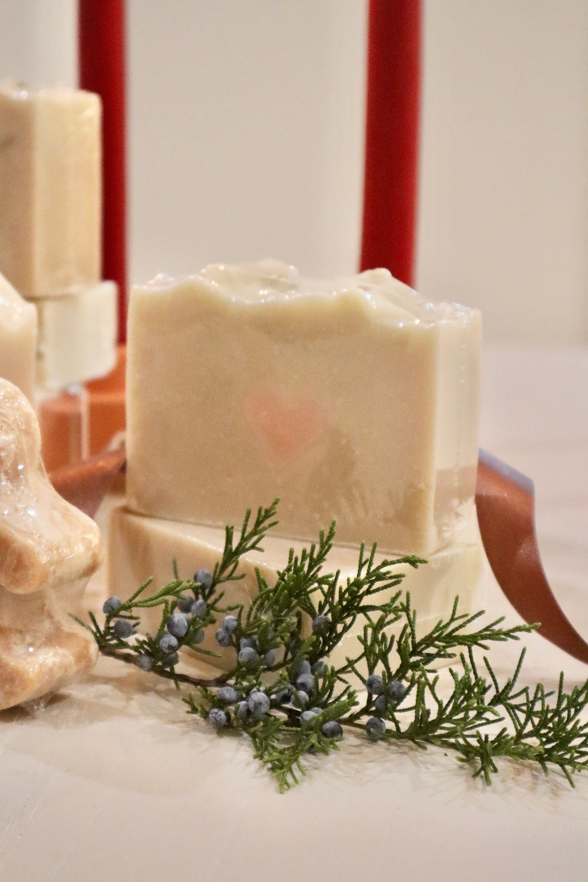 Inspired by the Grinch. It features a light green base with a sweet red heart embed in some bars — all scented with pure, cool peppermint.
